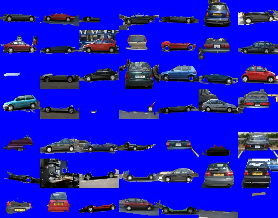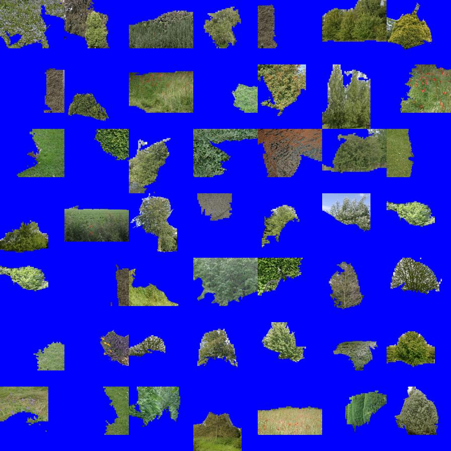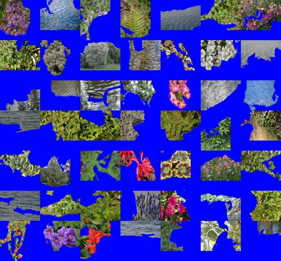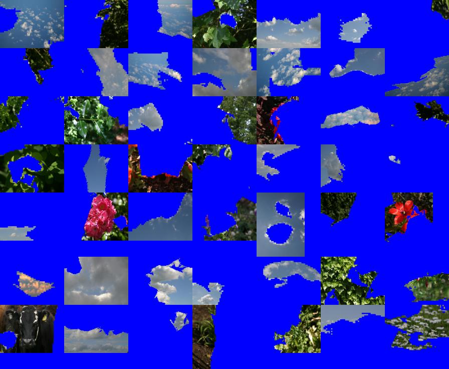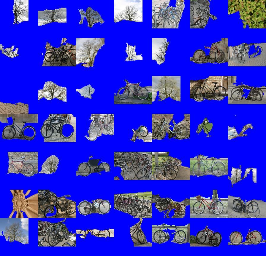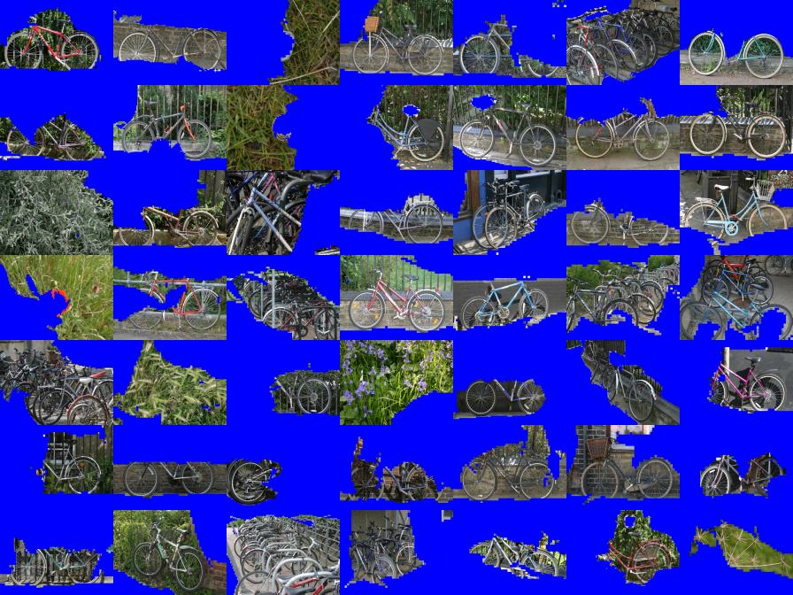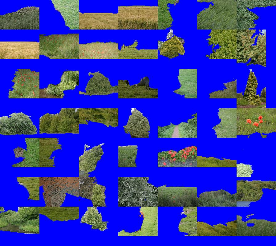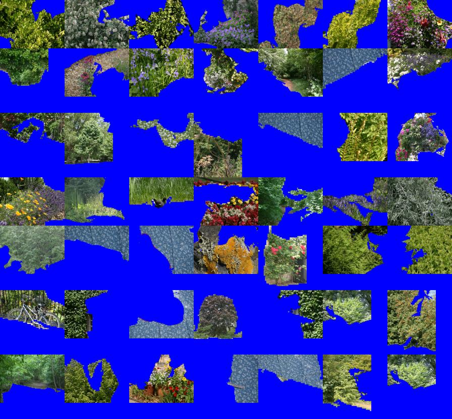 This page shows montages of the top 49 segments for each learned topic using LDA on Ncut segments for the MSRC dataset. There are 25 learned topics in all.